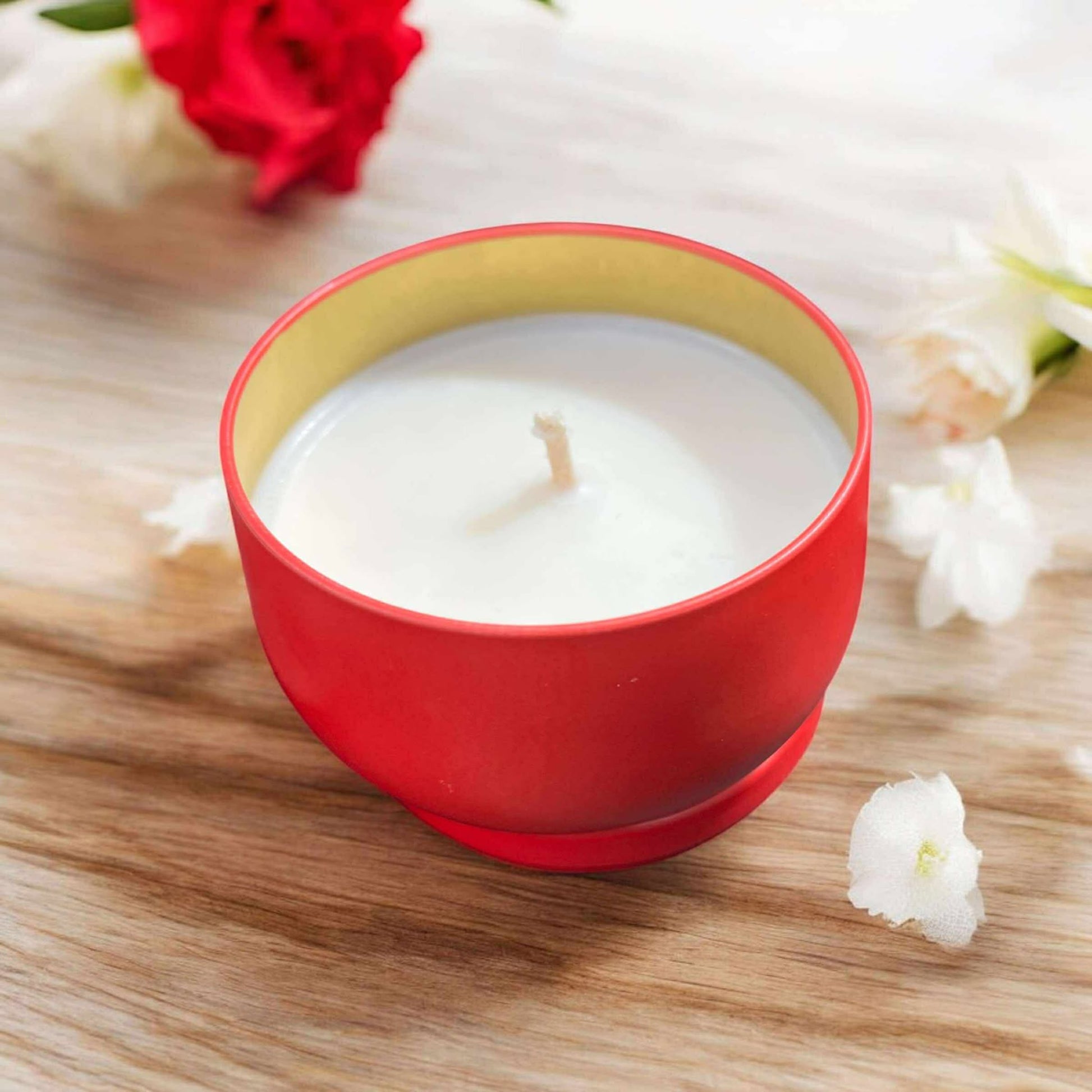 Red tin candle approx burn time of 15 - 20 hrs. made in the scent of your choice from 100% soy wax